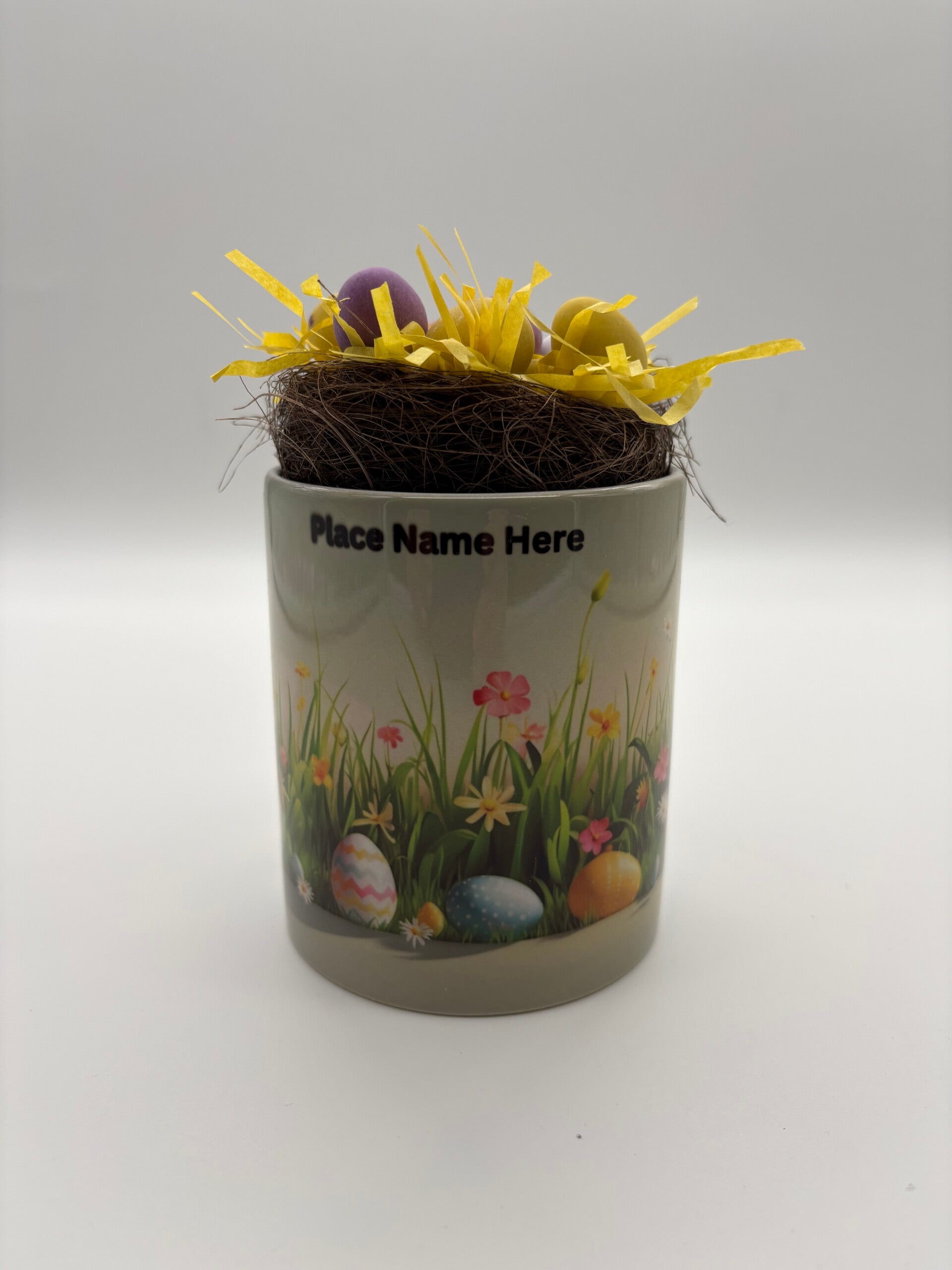This 11oz Drinking Mug, Ideal for Easter Celebrations. This mug comes complete with all Tissue Paper, Nest, Linning and10 Mini Chocolate Eggs. Why not design your own Pattern / Name for your mug and let us print it for you at no extra cost. All of our Products are Securely Wrapped to Avoid Breakage in Transit.